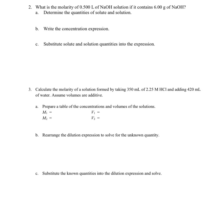 What Is The Molarity Of A Solution That Contains 30 Grams Of Naoh In 500 Answered Calculate The Molarity Of The Two Bartleby How Many Grams Of Lioh Is Needed from i1.wp.com 8 grams naoh, 450 ml has dissolved in the solution. Calculate the molarity of a solution prepared by dissolving 23.7 grams of kmno 4 into enough water to make 750 ml of solution. Ion concentration given moles and ml 3. 500 ml of a solution contains 20 grams of naoh (mw = 40). What is the molarity of a solution that contains 30 grams of naoh in 500 / honors chemistry solutions flashcards quizlet. 45.0 ml of a solution of naoh is diluted by adding 250.0 ml of water to produce a new molarity of how many grams of al2o3 are produced? Molarity (m) is defined as moles of solute per liter of solution. A 20.0 ml sample of this glucose solution was diluted to 0.500l.